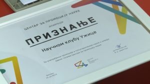 Užičkom Naučnom klubu, koji funkcioniše u okviru Regionalnog centra za usavršavanje zaposlenih u obrazovanju, dodeljeno je priznanje za unapređenje promocije...