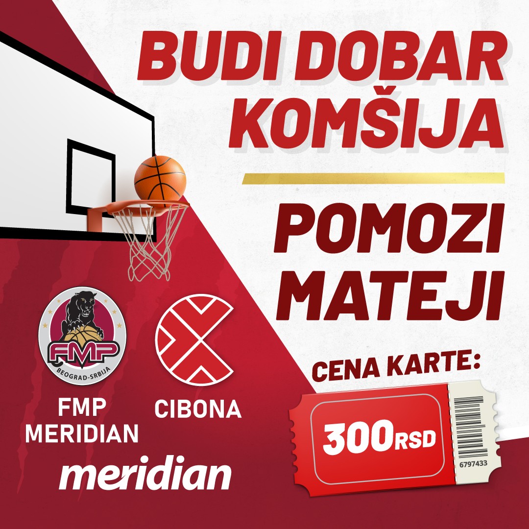 – To je sasvim dovoljan poziv da ispunimo FMP Arenu, a nazivni sponzor Meridian je, kako već tradicija nalaže kada je u pitanju saradnja kluba i ove kompanije, uzeo aktivno učešće u ovoj humanitarnoj akciji. Naime, svako pogođeno slobodno bacanje Meridian će vrednovati sa po 2.000 dinara, a biće postavljene i kutije na ulazima u dvoranu gde će svako moći da donira dodatan novac u skladu sa svojim mogućnostima – navodi se na sajtu FMP Meridiana.