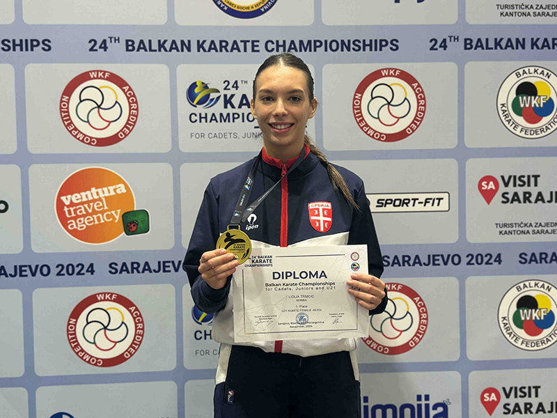 Наша најбоља каратискиња, Лидија Трмчић у конкуренцији млађих сениорки борбе до 50 кг, освојила је златну медаљу и постала шампионка Балкана. У првом колу савладана је Румунка 6-0, у другом такмичарка БиХ 4-2, док су у полуфиналу и финалу савладане Туркиње, у веома неизвесним и занимљивим мечевима. Сергеј Курћубић наступио је у конкуренција кадета кате. У првом колу победио је Румуна, да би у другом колу избубио од такмичара Црне Горе. Бојана Караичић је наступила у конкуренцији јуниорки до 66 кг. Водила је резултатом 5-0, а онда је својом грешком, а и грешком судија изгубила добијени меч, али је показала да се на њу тек рачуна и да добри резултати тек предстоје.