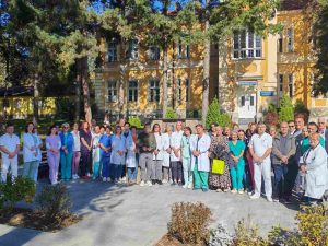 На платоу испред Здравственог центра Ужице данас у 11.52 окупили су се запослени из Опште болнице, Завода за јавно здравље...